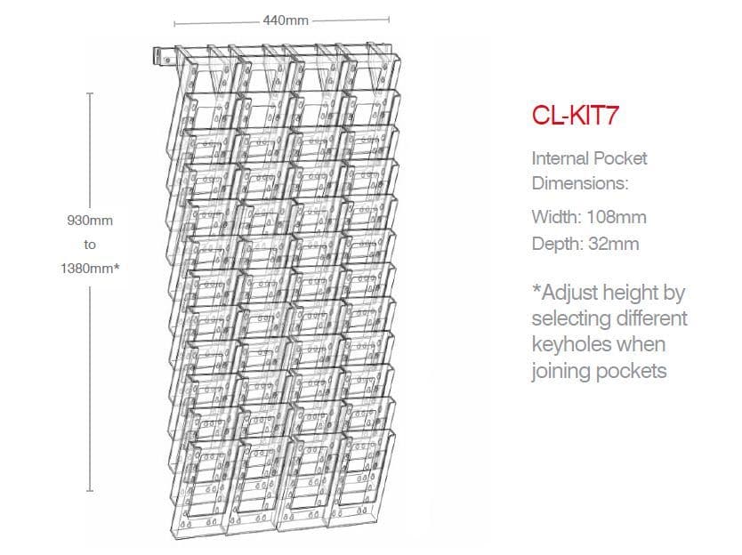 The CL-KIT7 display kit includes 48 x 1/3rd A4 pockets and all necessary fixings.